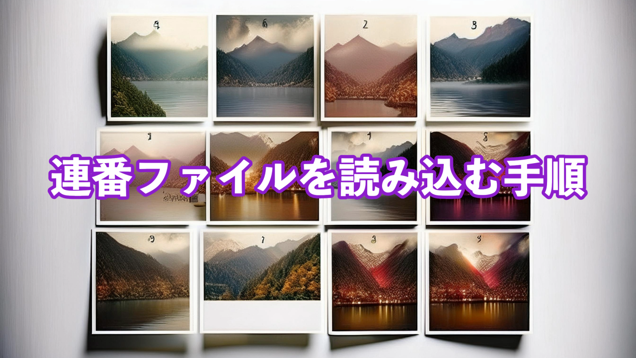 連番ファイルはAfterEffectsだと3桁を[###]、5桁なら[#####]という表記で1フレームずつ画像として出力したものです。以下の手順で読み込みましょう。